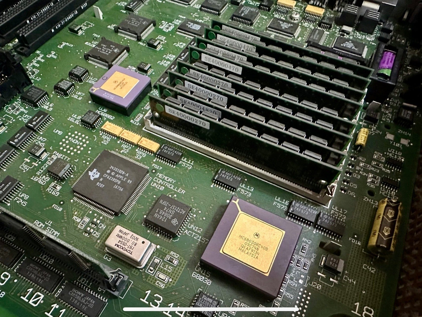 This Apple Macintosh IIfx features a 40MHz 68030 w/ 40MHz memory bus, enhanced I/O controllers, and an enhanced SCSI. All electrolytic capacitors on the motherboard and the C1 tantalum have been replaced. The floppy drive has been re-lubricated and the eject gear has been replaced.