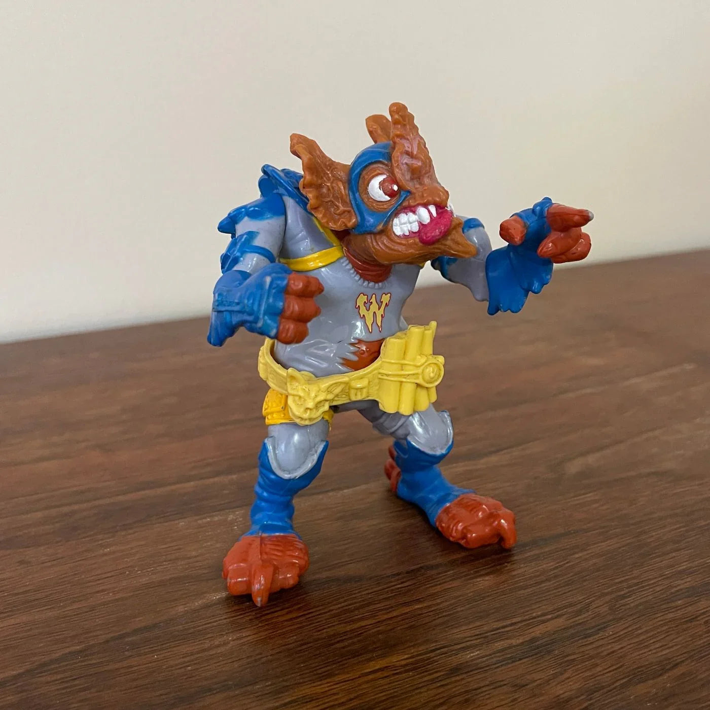 This is a used action figure of Wingnut & Screwloose, the dingbat bat with anger problems. Playskool made him for TMNT in 1990. Wingnut has no missing body pieces and comes with his original belt accessory. Great for TMNT collectors and fans.